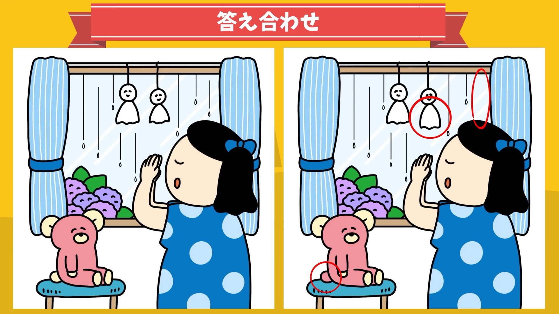 【第1問】てるてる坊主さんにお祈りをしている女の子